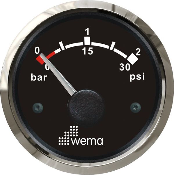 Silverline instrument med høj nøjagtighed og valgfri rød / gul LED baggrundsbelysning. Vandtæt IP56, modstandsdygtig overfor UV og saltvand Udskæring: 52 mm, Yderdia. 62 mm, Dybde 60 mm.
