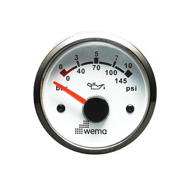 Silverline instrument med høj nøjagtighed og valgfri rød / gul LED baggrundsbelysning. Vandtæt IP56, modstandsdygtig overfor UV og saltvand Udskæring: 52 mm, Yderdia. 62 mm, Dybde 60 mm.