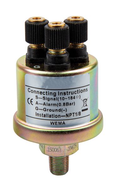Alarm ved 0,8 bar. 1/8 - 27 NPTF gevind. 10-185 ohm