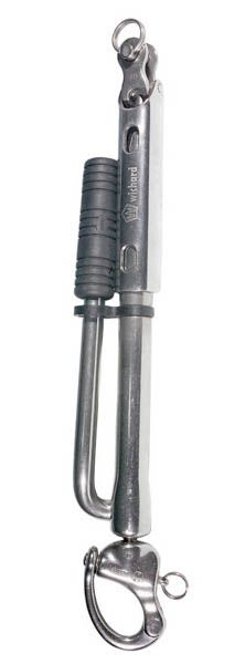 316L rustfri stål, HR 17.4 snap sjækkel Længde 250-310 mm, 8 mm pin, til wire 4-5 mm Funktionsbelastning 960 kg - Brudstyrke 2400kg Hvis du har brug for et flytbart ekstra forstag, er det en god id? at investere i en Wichard babystag- strammer. Wichard tilbyderen hel serie af forskellige typer. Fælles for dem alle er, at de er lette at af- og påmontere. Findes med handhjul eller klapbart håndtag - med eller uden skralde.