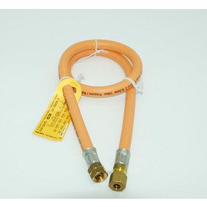 Regulatorslange med pressede endefittings mellem regulator (ved gasflaske) og kobberrør. 80 cm VM. Møtrik med skærering og Ø8mm rør.