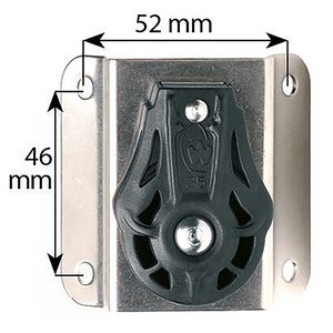 Rebeblok i POM med komposit skive. Plade i 316L rustfri stål. Til 8-9 mm liner. Længde: 60 mm. Bredde: 58 mm. Tykkelse: 40 mm. Funktionsbelastning 320 kg - Brudstyrke 900 kg. Vægt: 103 g. Wichard fører et komplet sortiment af glidelejeblokke i kompositmaterialer i et moderne design, der kan modstå høje belastninger. Ideelle til statisk belastning. Skiven løber på bøsning i rustfrit stål.
