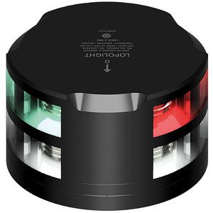 Tri-color lanterne med ankerlys, og kan også lyse med blink / strobeeffekt. Til horisontal montage. Farve: Sort. Lys: Grøn / rød / hvid Rød og grøn lyser i vinkler på 112,5?, hvid lyser i 135? Har en rækkevidde på 1 nm (1 sømil) Passer til både på 0-12m. Til 12/24V. Kabel på 0,7m medfølger. Certificeret og overholder alle standarder. 100% vandtæt (IP68) aluminiumshus. 5 års garanti. Mål: Ø92,5mm x 68mm Vægt: 0.79 Kg