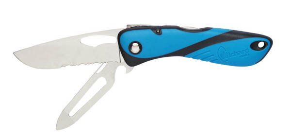 Savtakket knivblad i korrosionsbestandigt rustfrit stål Sejlerkniv med soft grip, blad længde 8 cm Sjækkelåbner og merlespiger Sejlsportskniv som forbliver skarp under alle forhold Designet til sejlere og krævende skippere, Wichards Offshore knive løser en lang række af essentielle funktioner ombord: Skarphed synlig i mørke, låsbart knivblad, åbning med en hånd korrosionsbestandig, mekanisk solid. Det savtakkede blad gør det let at skære alle typer tovværk, inklusiv Dynema