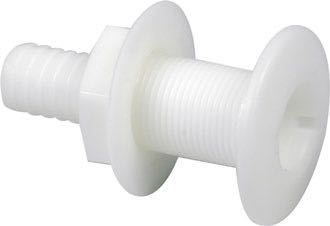 PVC gennemføring med gevind og slangestuds der passer til forskellige størrelser. Perfekt som lænsegennemføring.