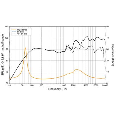 Fås i hvid (TW) og sort (TC) med tone-i-tone rustfri stålgitter. Optimeret til ubegrænset baffel med kraftig bas og høj lydstyrke. Diskanten har akustisk linse for optimal spredning og maksimal SPL.