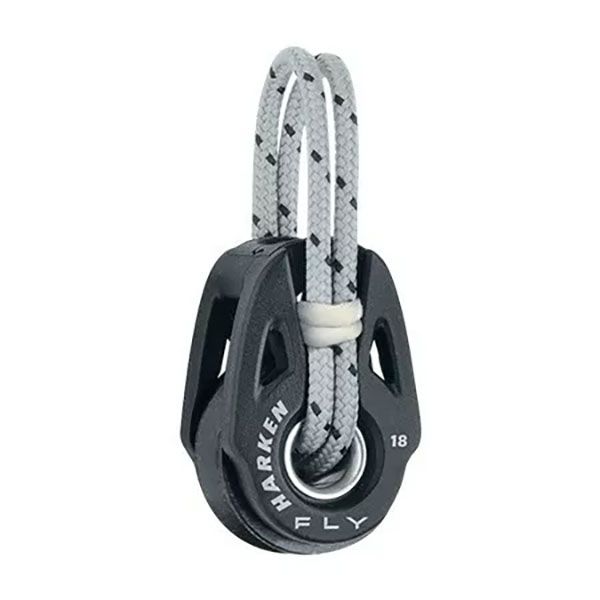 Max line Ø5mm. Længde: 28mm. Skive: Ø18mm SWL: 125 kg. Brudstyrke: 450kg. Vægt: 7,2g Harken soft-attach Fly-blokke er designet specielt til højteknologiske liner og har en utrolig arbejdsbelastning til trods for deres lille størrelse. Harkens Fly-blokke er perfekte til brug på foilende joller og sportsbåde. til kontrol linjer på både i alle størrelser. Letvægt, stærk og pålidelig fiberforstærket kompositkonstruktion.