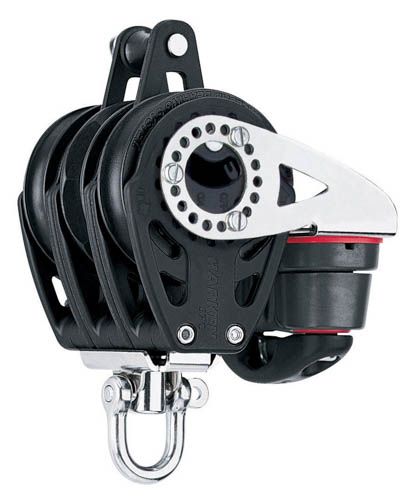 Max line Ø10mm. Længde: 125mm. Skive: Ø57mm SWL: 816 kg. Brudstyrke: 2041kg (baseret på frølåret) Vægt: 445g Ratchet blokke gør det muligt for sejleren at håndtere liner under høj belastning kontrolleret og effektfuldt. 8-kantet hardkote-anodiseret, Teflon?-imprægneret skive med en friktionsbremsning af linen ved 180 grader.