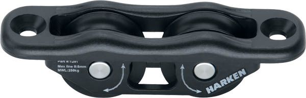 Max line Ø8mm. Længde: 97mm. Skive: Ø30mm SWL: 250 kg. Brudstyrke: 500kg. Vægt: 57g Når du sejler hård kapsejlads bør du forvente slid på sidepladerne på dit faldudtag. Takket være Harken Protexit faldudtag er slid fra sidevinklen ikke tilstede. Protexits aluminiums slidbestandige hus fører forsigtigt linjen ind og ud uanset vinklen. Protexit faldudtag tåler højere højere arbejdsbelastninger end nogen andre småbåds faldudtag, vi nogensinde har lavet. Protexit aluminiumskiver roterer på Delrin kuglelejer der ikke deformeres under ekstreme forhold.