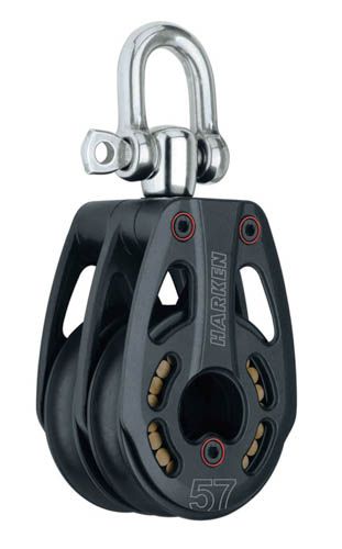 Max line Ø12mm. Længde: 132mm. Skive: Ø57mm SWL: 1250 kg. Brudstyrke: 2500kg. Vægt: 342g Harkens Black Magic blokke er stærke, lette og letløbende, og kaldes også for Harkens arbejdsheste på grund af deres høje styrke-/ vægtforhold, og ekstremt lette løb. Det er must have- blokken, uanset om du sejler lokalt eller globalt. Med Torlon rulleleje. Delrin kugler i siderne tager belastningen sideværts. Sideplader og skive er hård-anodiseret og Teflon- belagt aluminium. Kan skilles helt ad ved at løsne tre skruer, uden løse kugler.