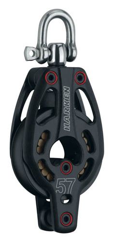 Max line Ø12mm. Længde: 140mm. Skive: Ø57mm SWL: 750 kg. Brudstyrke: 1500kg. Vægt: 169g Harkens Black Magic blokke er stærke, lette og letløbende, og kaldes også for Harkens arbejdsheste på grund af deres høje styrke-/ vægtforhold, og ekstremt lette løb. Det er must have- blokken, uanset om du sejler lokalt eller globalt. Med Torlon rulleleje. Delrin kugler i siderne tager belastningen sideværts. Sideplader og skive er hård-anodiseret og Teflon- belagt aluminium. Kan skilles helt ad ved at løsne tre skruer, uden løse kugler.