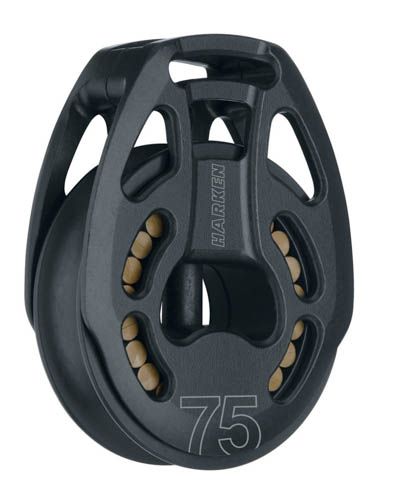 Max line Ø14mm. Længde: 100mm. Skive: Ø75mm SWL: 2268 kg. Brudstyrke: 4536kg. Vægt: 209g Harkens Black Magic blokke er stærke, lette og letløbende, og kaldes også for Harkens arbejdsheste på grund af deres høje styrke-/ vægtforhold, og ekstremt lette løb. Det er must have- blokken, uanset om du sejler lokalt eller globalt. Med Torlon rulleleje. Delrin kugler i siderne tager belastningen sideværts. Sideplader og skive er hård-anodiseret og Teflon- belagt aluminium. Kan skilles helt ad ved at løsne tre skruer, uden løse kugler.