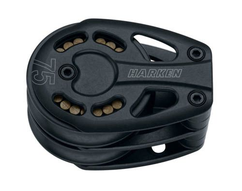 Max line Ø14mm. Længde: 111mm. H: 57mm. Skive: Ø75mm SWL: 1572 kg. Brudstyrke: 3143kg. Vægt: 490g Harkens Black Magic blokke er stærke, lette og letløbende, og kaldes også for Harkens arbejdsheste på grund af deres høje styrke-/ vægtforhold, og ekstremt lette løb. Det er must have- blokken, uanset om du sejler lokalt eller globalt. Med Torlon rulleleje. Delrin kugler i siderne tager belastningen sideværts. Sideplader og skive er hård-anodiseret og Teflon- belagt aluminium. Kan skilles helt ad ved at løsne tre skruer, uden løse kugler.