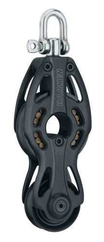 Max line Ø14mm. Længde: 199mm. Skive: Ø75mm SWL: 2268 kg. Brudstyrke: 4536kg. Vægt: 503g Harkens Black Magic blokke er stærke, lette og letløbende, og kaldes også for Harkens arbejdsheste på grund af deres høje styrke-/ vægtforhold, og ekstremt lette løb. Det er must have- blokken, uanset om du sejler lokalt eller globalt. Med Torlon rulleleje. Delrin kugler i siderne tager belastningen sideværts. Sideplader og skive er hård-anodiseret og Teflon- belagt aluminium. Kan skilles helt ad ved at løsne tre skruer, uden løse kugler.