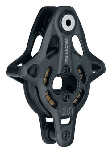 Max line Ø16mm. Længde: 193mm. Skive: Ø100mm SWL: 3402 kg. Brudstyrke: 6804kg. Vægt: 542g Runner-blok til løbende bagstag. Harkens Black Magic blokke er stærke, lette og letløbende, og kaldes også for Harkens arbejdsheste på grund af deres høje styrke-/ vægtforhold, og ekstremt lette løb. Det er must have- blokken, uanset om du sejler lokalt eller globalt. Med Torlon rulleleje. Delrin kugler i siderne tager belastningen sideværts. Sideplader og skive er hård-anodiseret og Teflon- belagt aluminium. Kan skilles helt ad ved at løsne tre skruer, uden løse kugler.