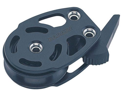 Harken ESP 57 mm fodblok med klemme/lås ESP er en serie af blokke der komplementer de øvrige Harken serier i design og funktion, men er enkle i design og konstruktion. Skiven har Carbon Delrin-kugler, der tager den lette belastning horisontalt samt sideværts. Ved høje statiske belastninger optages disse af det store rustfri centerglideleje. ESP er ideelle som fx mastefodsblokke og findes i mange varianter.