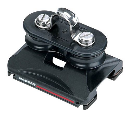 Highload skødevogn med faste skiver og bøjle, til Harkens 22 mm skinner. CNC-fræset i ?t stykke UV-stabiliseret, hardlube- anodiseret 6061-T6 aluminium. Med CB (Captive Ball) kuglelejer med 40 stk. Ø6 Torlon kugler. Bredde: 57 mm. Længde: 73 mm. Højde vogn ekskl. skiver og bøjle: 24 mm Vægt: 159 g. SWL: 386 kg. Brudstyrke: 1.134 kg.