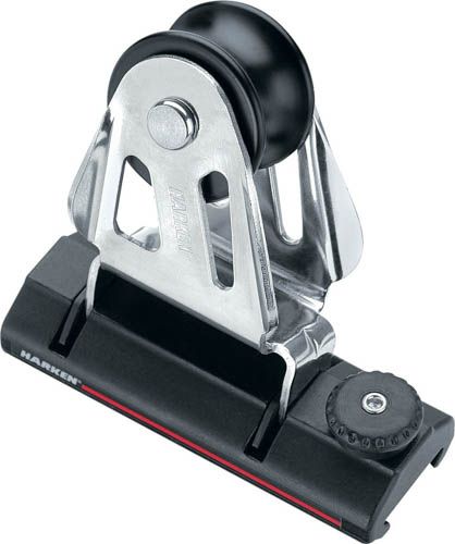 Genuavogn med glidelejer og pinstop. Brug pinstop skødevogne hvor positionerne sjældent ændres . Til Harkens 22 mm CB skinner. Max tov: Ø12 mm. Vognen er CNC-fræset i ?t stykke UV-stabiliseret, hardlube- anodiseret 6061-T6 aluminium. Bredde: 35 mm. Længde: 95 mm. Vægt: 272 g. SWL: 567 kg. Brudstyrke: 1.134 kg. Skive: ESP Ø38 mm. Kan vippe op til 60 grader.