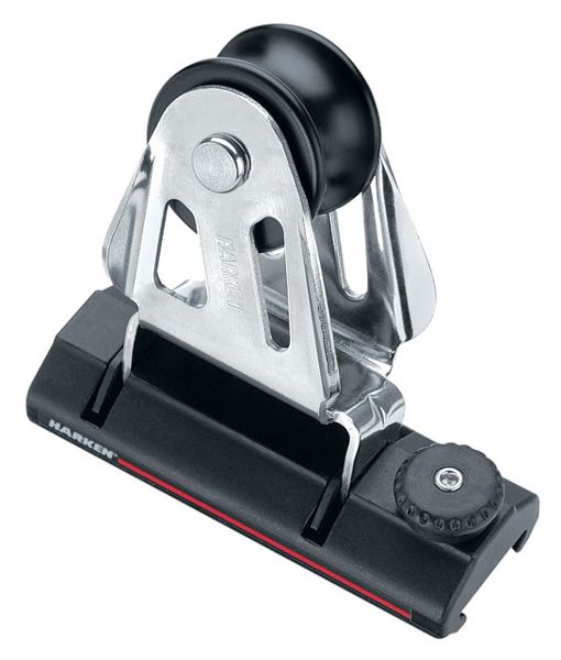 Styrbord genuavogn med glidelejer og pinstop. Brug pinstop skødevogne hvor positionerne sjældent ændres . Til Harkens 22 mm CB skinner. Max tov: Ø12 mm. Vognen er CNC-fræset i ?t stykke UV-stabiliseret, hardlube- anodiseret 6061-T6 aluminium. Bredde: 35 mm. Længde: 95 mm. Vægt: 272 g. SWL: 567 kg. Brudstyrke: 1.134 kg. Skive: ESP Ø38 mm. Kan vippe op til 60 grader.