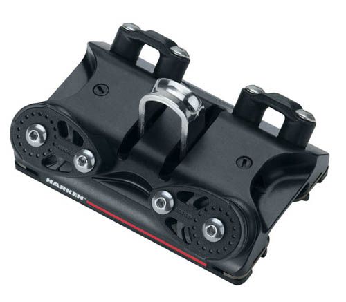 Midrange skødevogn med 4 Carbo blokke til 3:1 skødesystem, til Harkens 27 mm skinner. CNC-fræset i ?t stykke UV-stabiliseret, hardlube-anodiseret 6061-T6 aluminium. Med CB (Captive Ball) kuglelejer med 48 stk. Ø8 Torlon kugler. Bredde: 81 mm. Længde: 108 mm. Højde: 50 mm Vægt: 313 g. SWL: 816 kg. Brudstyrke: 2.268 kg. Kan konfigureres med tilbehør efter behov