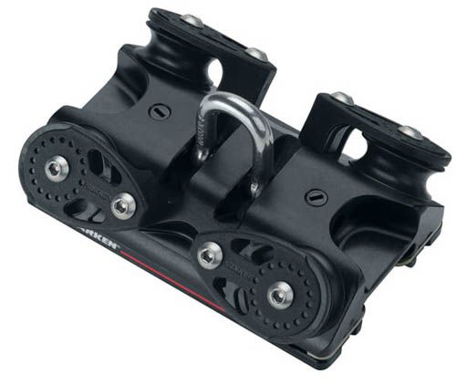 CB-kugleleje vogn med sjækel og blokke (4:1). Til 32 mm. skinne. Længde: 136 mm. Bredde: 111 mm. Højde: 89 mm. Vægt: 567 g. SWL: 1361 kg. Brudstyrke: 3175 kg CNC-fræset i et stykke UV-stabiliseret anodiseret 6061-T6-aluminium.