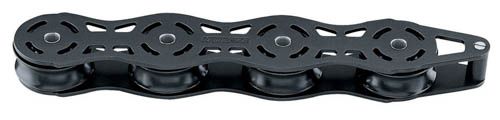 Harken ESP fordelerblok i aluminium med 2 stk. 40 mm skiver ESP er en serie af blokke der komplementer de øvrige Harken serier i design og funktion, men er enkle i design og konstruktion. Skiven har Carbon Delrin-kugler, der tager den lette belastning horisontalt samt sideværts. Ved høje statiske belastninger optages disse af det store rustfri centerglideleje. ESP er ideelle som fx mastefodsblokke og findes i mange varianter.