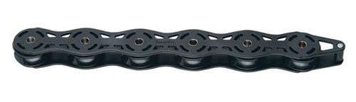 Harken ESP fordelerblok i aluminium med 3 stk. 57 mm skiver ESP er en serie af blokke der komplementer de øvrige Harken serier i design og funktion, men er enkle i design og konstruktion. Skiven har Carbon Delrin-kugler, der tager den lette belastning horisontalt samt sideværts. Ved høje statiske belastninger optages disse af det store rustfri centerglideleje. ESP er ideelle som fx mastefodsblokke og findes i mange varianter.