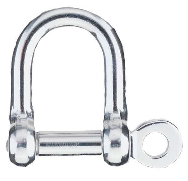Smedet rustfri sjækkel. Pin: Ø6 mm. Indre længde: 19 mm. Indre bredde ved pin: 14 mm. Funktionsbelastning: 750 kg. Brudstyrke: 1.500 kg. Vægt: 25 g.