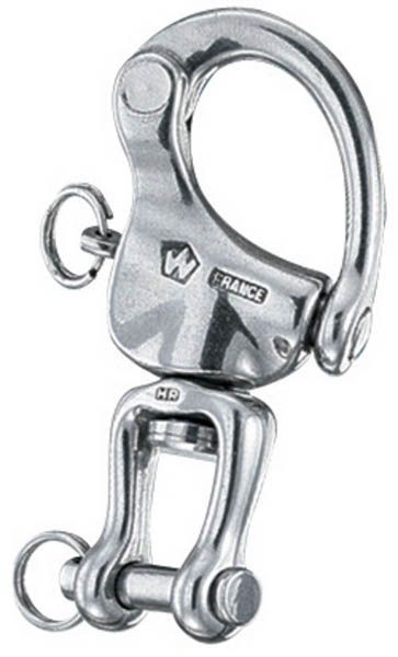 Høj brudstyrke - HR rustfri stål 17.4 PH 17 x 11 mm gaffel m. 7 mm pin, 21 mm gab Funktionsbelastning 1280 kg - Brudstyrke 3800 kg Alle Wichard's snapsjækler er forsynet med en captive låsepind, dvs. at låsepinden under ingen omstændigheder kan falde ud, hvilket er en høj sikkerhedsfaktor. Snapsjæklerne fås i mange forskellige versioner, som med fast øje, med svirvel med gevind, med kovs, til webbing osv.