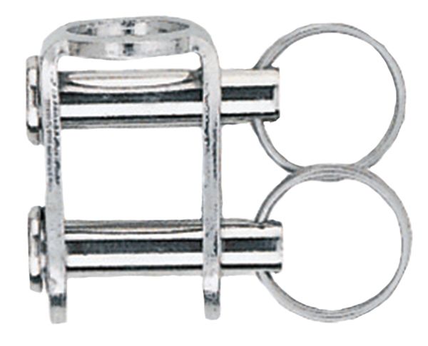 Svirvel adapter til blok. Rustfri stål. Pin: Ø5mm. Afstand ml. pins: 12 mm. Indre bredde: 11 mm. Funktionsbelastning: 567 kg. Brudstyrke: 1.134 kg Vægt: 13,6 g.