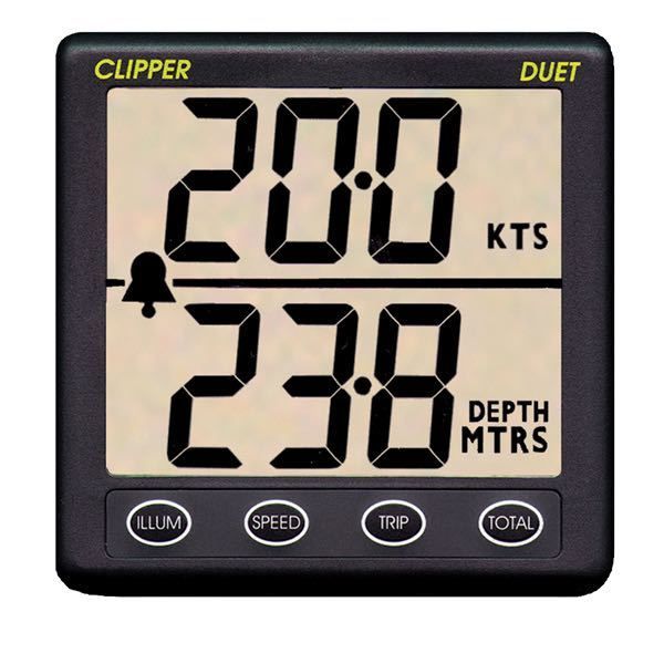Clipper kombi instrument med dybde og fart. med instrumentet medfølger der transducer og alle de nødvændige fittings til montering.
