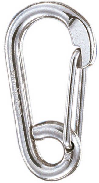 316L rustfri stål Gods 6 mm, 10 mm gab, kous 7 mm Funktionsbelastning 360 kg - Brudstyrke 600 kg Wichard's karabinhager er enkle, sikre, stærke og pålidelige. Fjederens udformning sikrer, at den bevarer sin styrke uændret og ikke bliver svag. Kan åbnes med ?n hånd og benyttes til et utal af forskellige formål. Husk at med et Wichard produkt får du opgivet funktions- og brudstyrker som du kan regne med. Hvis karabinhagen overbelastes vil den deformere eller strække sig. Hvis du overbelaster en billig støbt karabinhage vil den sprænge, hvilket kan medføre skader.