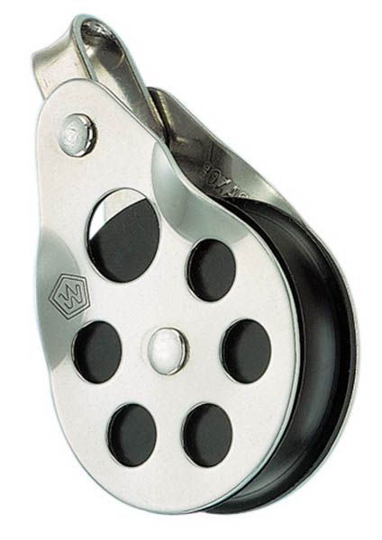 316L rustfri stål, composit skive 50 mm skive op til 10 mm tov, sjækkel montering Funktionsbelastning 320 kg - Brudstyrke 800kg Wichard's klassiske faldblok i rustfri stål med 50 mm aftagelig blok, kurvet beslag
