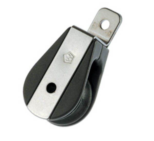 316L rustfri stål, med polycarbonat sider og composit skive Til 4-6 mm liner Funktionsbelastning 240 kg - Brudstyrke 500 kg Wichard fører et komplet sortiment af glidelejeblokke i kompositmaterialer i et moderne design, der kan modstå høje belastninger. Ideelle til statisk belastning. Skiven løber på bøsningen i rustfrit stål. Mange muligheder for fastgørelse takket være universalhovedet.