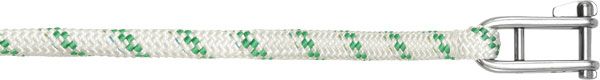 Liros polyester fald med isplejset Wichard faldsjækel. Lavet af Liros Hercules LSP-32 line, hvor yderstrømpen er en slidstærk 32 flettet strømpe med en special forstrakt 3-slået polyester kerne. Super cruising fald som er meget slidstærk og bider godt i aflasteren. Forlængelse max 2%. Splejsningen er lavet ved Columbus Marine.