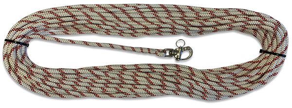 Liros polyester fald med isplejset svirvelhage. Lavet af Liros Hercules LSP-32 line, hvor yderstrømpen er en slidstærk 32 flettet strømpe med en special forstrakt 3-slået polyester kerne. Super cruising fald som er meget slidstærk og bider godt i aflasteren. Forlængelse max 2%. Splejsningen er lavet ved Columbus Marine.