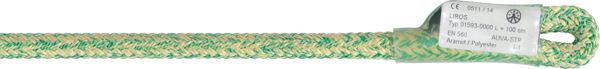 Professionel arborist line i færdig længde med syede øjer (1,5 cm) i hver ende. Uovertruffen slidstyrke, selv ved høje temperaturer, med hybridfibre i strømpen som hæmmer smeltning. 20-flettet med perfekt hæftning mellem strømpe og kerne. Brudstyrke: ca. 2,2 ton. Opfylder kravene til cetifikatet DIN EN 566 Strømpe: Polyester / Aramid. Kerne: HT Polyester