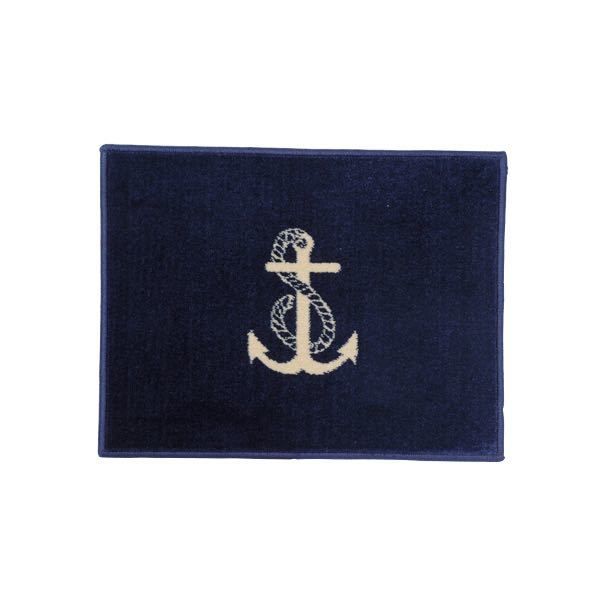 ? Marineblå med hvid tekst? Kraftig kantbånd? Antiskrid belægning på undersidenFirkantet m/vævet anker motiv, 61x45cm