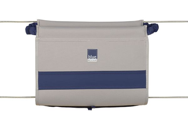 Søgelændertaske, standard version. Str. Large 40 x 32 x 7 cm. Lavet i vand-, skimmel- og UV-bestandigt polyester. Selvdrænende. Smart opbevaring af dine skøder, eller brug den til diverse småting som f.eks. din kniv, VHF osv. Fastgøres til den øverste søgelænderwire ved hjælp af velcro-klappen, og brug gjordremmene til at fastgøre til den nederste søgelænderwire. Med integreret regncover i lomme i bunden.