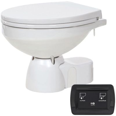 Jabsco Quiet Flush E2 er et meget støjsvagt toilet, som larmer langt mindre end vi ellers kender fra elektriske marinetoiletter. Toilettet bruger ferskvand fra bådens eksisterende trykvandssystem og det har en række fordele. Det mindsker lugten fra vand der står tilbage i kummen, og det giver en længere levetid på sliddele, som pakninger, membraner og andre pumpedele.