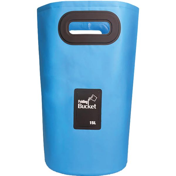 Smart sammenklappelig spand i blå PVC, der kan indeholde op til 15 liter.