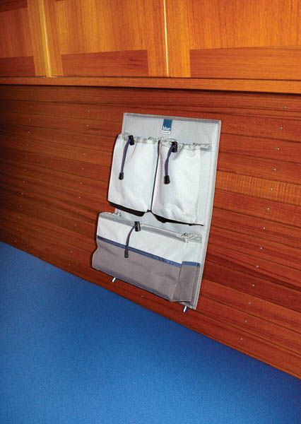 Kahytpose. Str. Small 35 x 47 x 7 cm. Ideel til opbevaring af telefoner, tablets, bøger osv. Vand-, skimmel- og UV-bestandigt polyester. Let at fastgøre og fjerne ved hjælp af de praktiske Blue Performance kroge. To små rum i toppen, et stort rum nederst. Ripstop materiale.